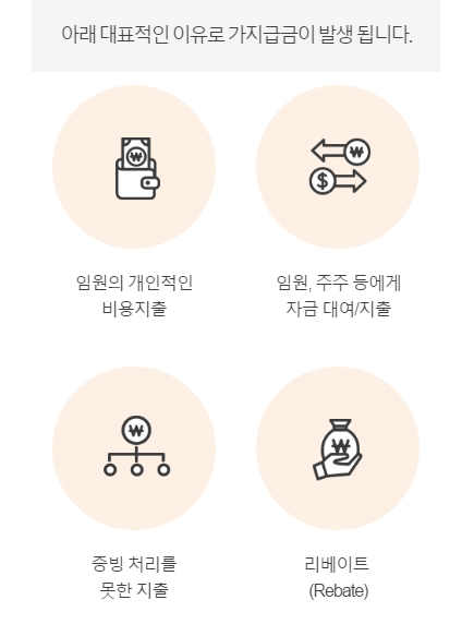 대표이사의 가지급금 미처리 뿐만 아니라 명의신탁주식, 자사주 매입과 같이 리스크 및 기업에게 큰 불이익을 가져올 수 있습니다.