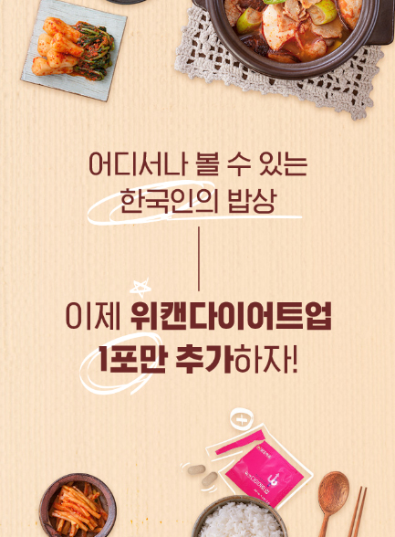 위캔다이어트업은 한국인 식습관에 최적화된 다이어트를 추구하는 건강기능식품이라죠.