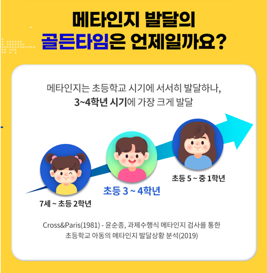 · 메타인지는 초등학교 시기에 서서히 발달하나 3~4학년 시기에 가장 크게 발달해요.