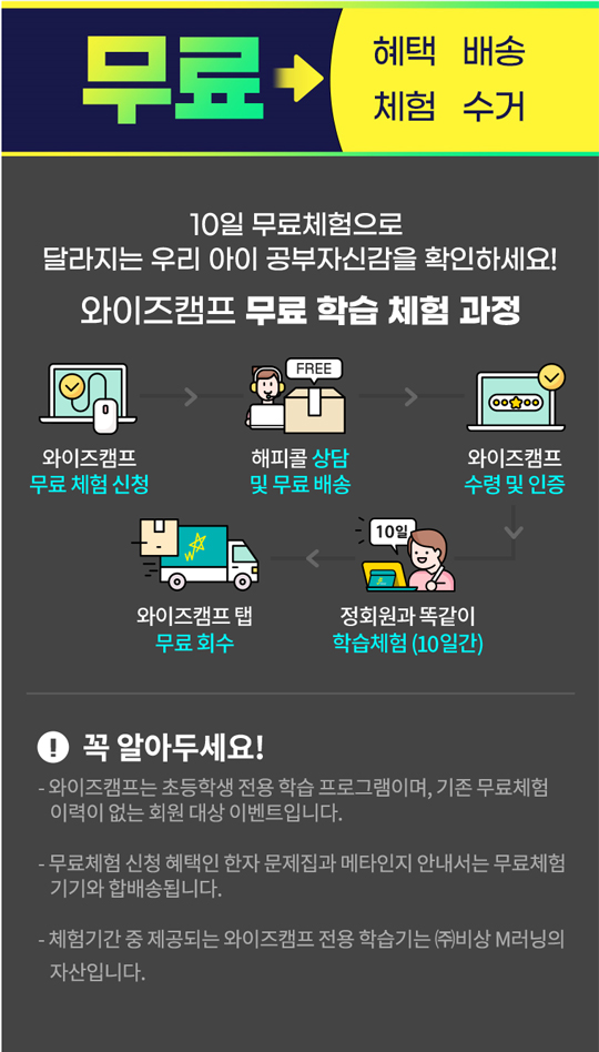 와이즈캠프 10일 무료체험 3가지 혜택 챙기시고 달라지는 우리 아이 공부 자신감을 확인하세요!