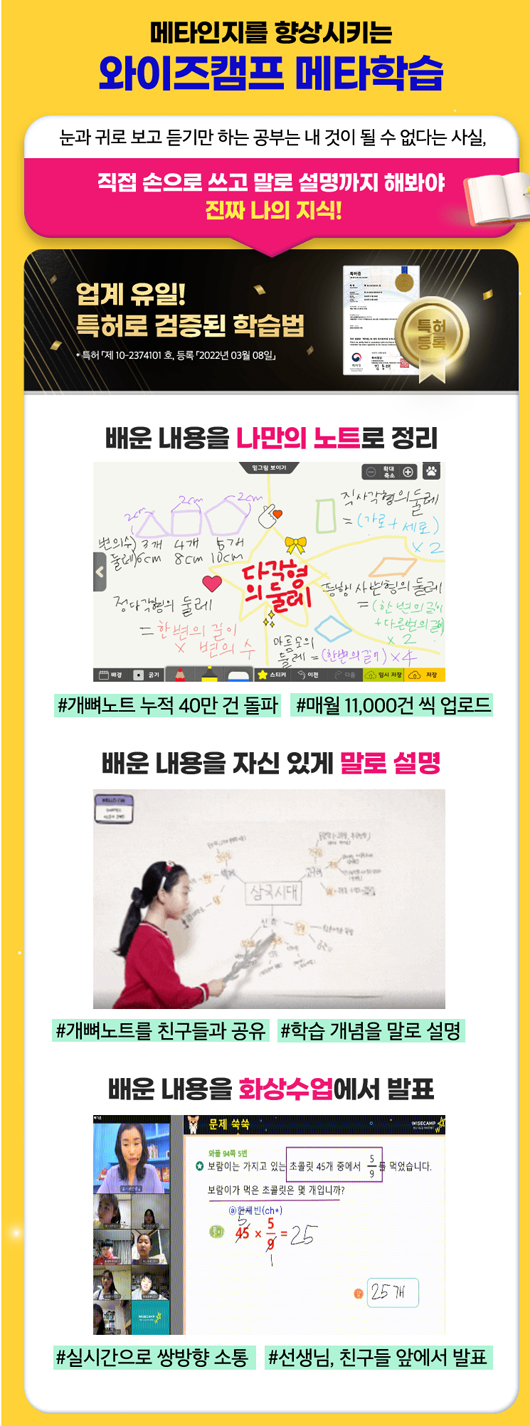 2. 초등인강 업계 유일 특허 검증 학습 와이즈캠프 초등학습 검증된 것만 하세요!