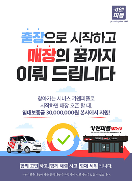 찾아가는 서비스 카앤피플로 시작하면 매장 오픈 할 때 임대보증금 30,000,000원 본사에서 지원!