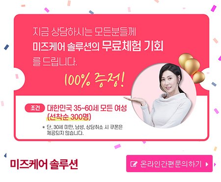 이에 질수축운동기구 미즈케어 솔루션 나에게 효과가 있을지 고민이시라면 지금 미즈케어솔루션 가격 부담없이 방송 협찬 기념 무료체험 기회를 드리고 있어 신청해 보신 후 결정해도 늦지 않겠어요 ~♥